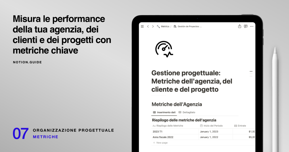 Organizzazione progettuale 07: Metriche dell'Agenzia, del Cliente e del Progetto